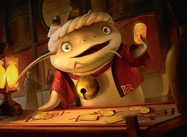 La carta de Namazu Trader encajaría bien en un mazo de vigilancia con temática negro-azul en Magic: the Gathering. Podría ser beneficiosa en un mazo centrado en sacrificar criaturas o artefactos por valor, con la ventaja añadida de crear fichas de Tesoro. Aunque puede haber cartas más poderosas disponibles, Namazu Trader podría ser una opción divertida y original en una estrategia de vigilancia más informal o económica.